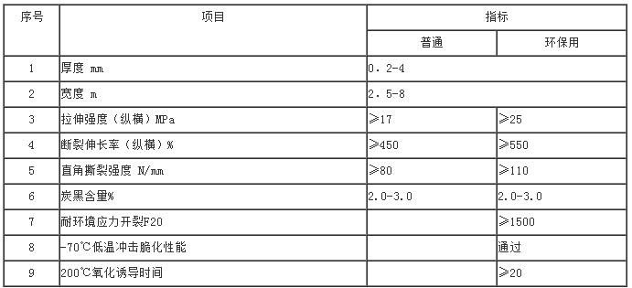 HDPE土工膜技術(shù)指標(biāo)
